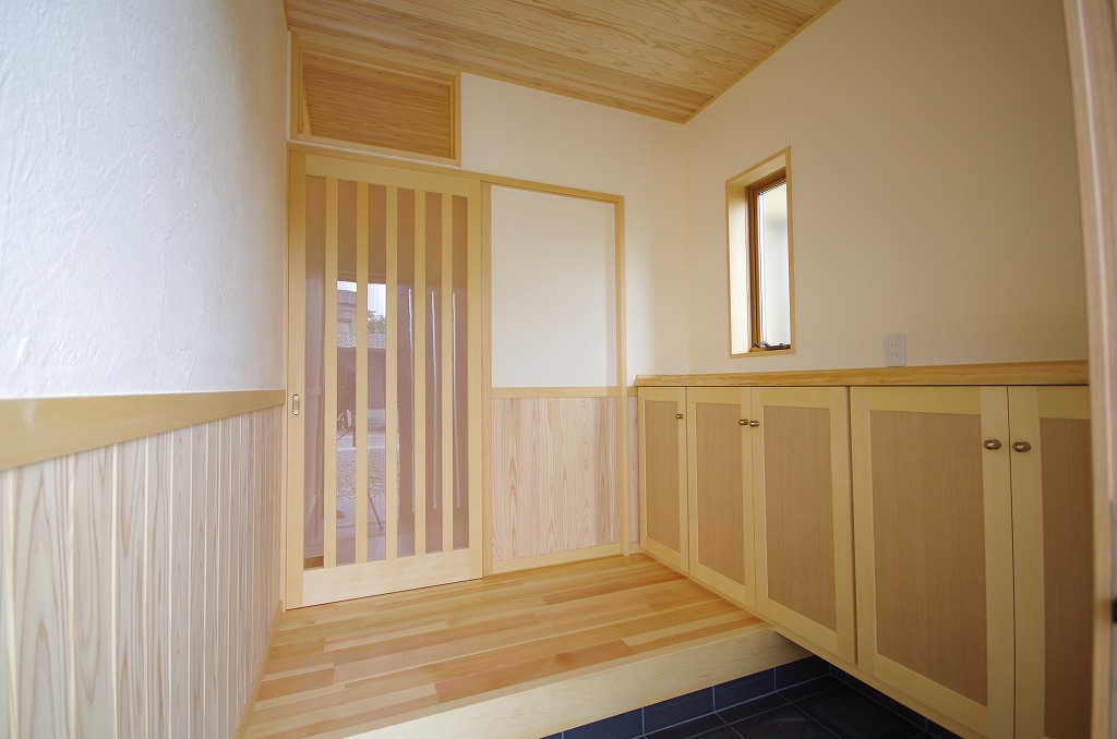 玄関(室内の省エネを考え風除室となるよう引き戸を設けました)