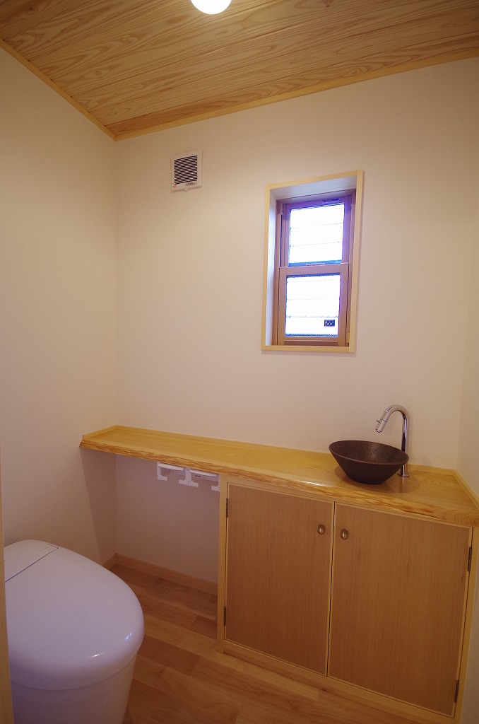 トイレ(桧の手洗いカウンター収納付 手造りです)