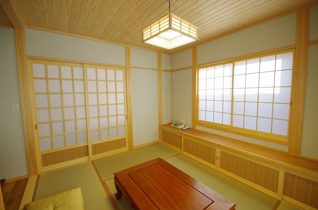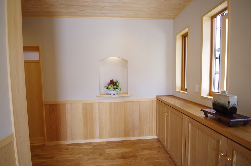 天井に日光さわら壁は珪藻土