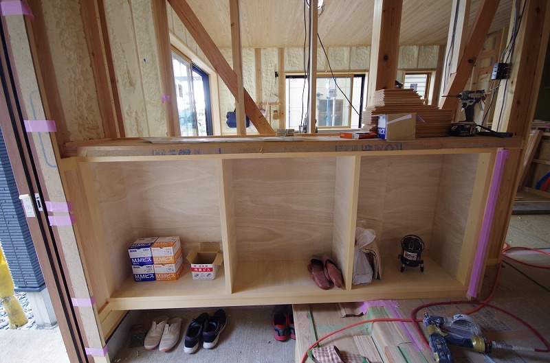 ミズナラ無垢材の下駄箱(当社オリジナル)