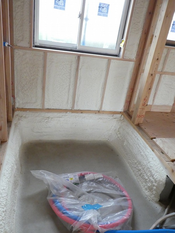 ユニットバス施工前に断熱工事をしっかりと施工します