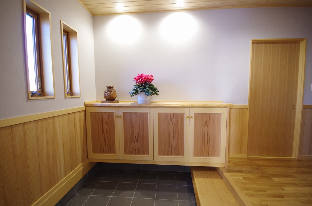 桧の式台と下駄箱