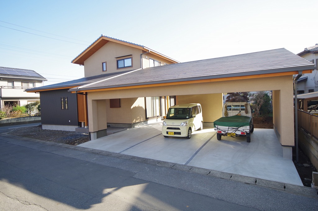 ガレージ付き木造2階建て住宅です