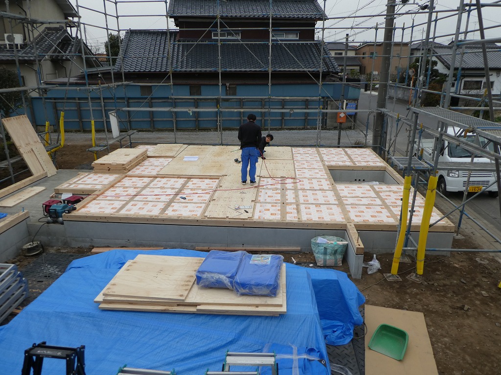床下地をしてウレタン断熱材を敷き詰めました